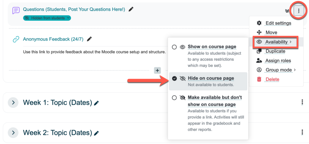 - Select Hide on course page